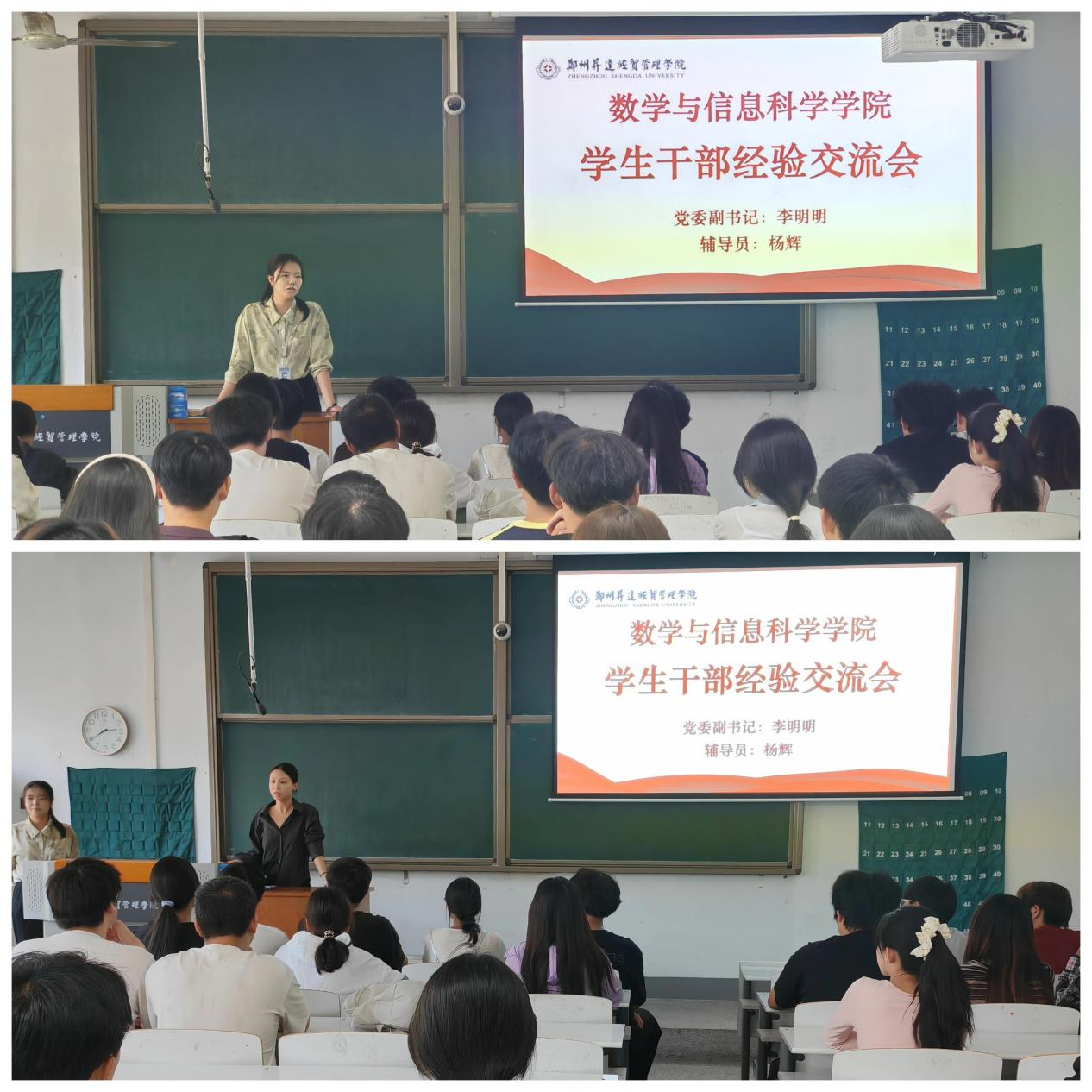 为帮助2025级学生干部快速适应工作角色、明确职责定位,搭建新老学生干部经验共享与沟通协作的桥梁。数学与信息科学学院于9月25日下午在综合楼221教室成功举办学生干部经验交流会,本次交流会由学院党委副书记李明明老师主持,辅导员杨辉老师和学院全体学生干部参会。