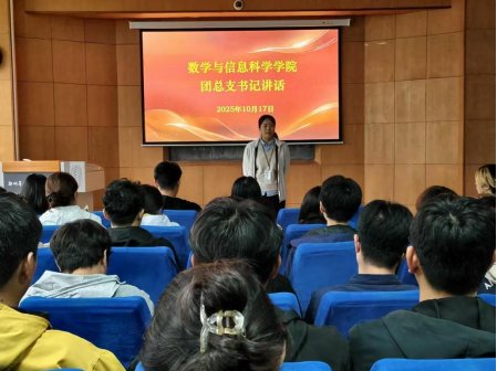 为总结过去一年团学工作成果,表彰优秀团学干部,同时开启第三届团学工作的新征程,激励全院团学成员以更饱满的热情投入到工作与学习中,数学与信息科学学院于2025年10月17日在综合楼222报告厅举行“第二届团学表彰会暨第三届团学成立会”。本次会议由学生会主席贺诗茵主持,党委副书记兼团总支书记李明明老师出席本次活动,全体团学成员参会。