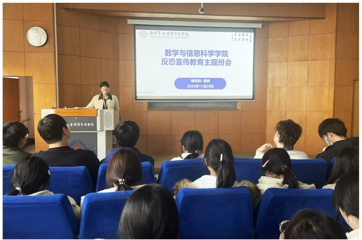 为增强学生的反恐怖意识,提升自我防范恐怖主义的能力,数学与信息科学学院组织全体学生于11月开展反恐怖宣传教育主题班会。