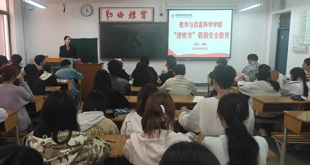 为切实增强学生安全防范意识,将假期安全要求落到实处,保障学生平安、文明度过清明节假期,数学与信息科学学院于2026年3月31日分别在自勉堂317教室、新图书馆第二报告厅顺利召开“清明节”假期安全教育主题班会。