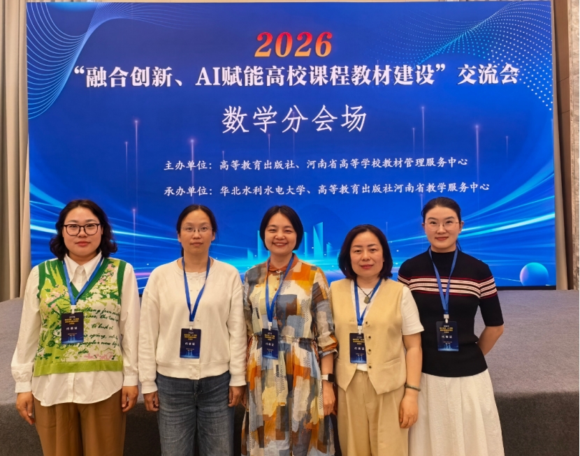 2026年4月25日,为推动人工智能技术与数学类课程教学融合,加快数智化教材与课程体系建设,“融合创新、AI赋能高校课程教材建设”交流会在河南郑州召开。我院选派时文俊等五位教师参会,学习前沿理念与实践经验。