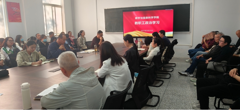 • 2025年9月25日,数学与信息科学学院在会议室开展“深入学习贯彻习近平总书记给全国特岗教师代表的重要回信精神”专题政治学习,全体教职工参加,由学院党委宣传委员李宁主持。