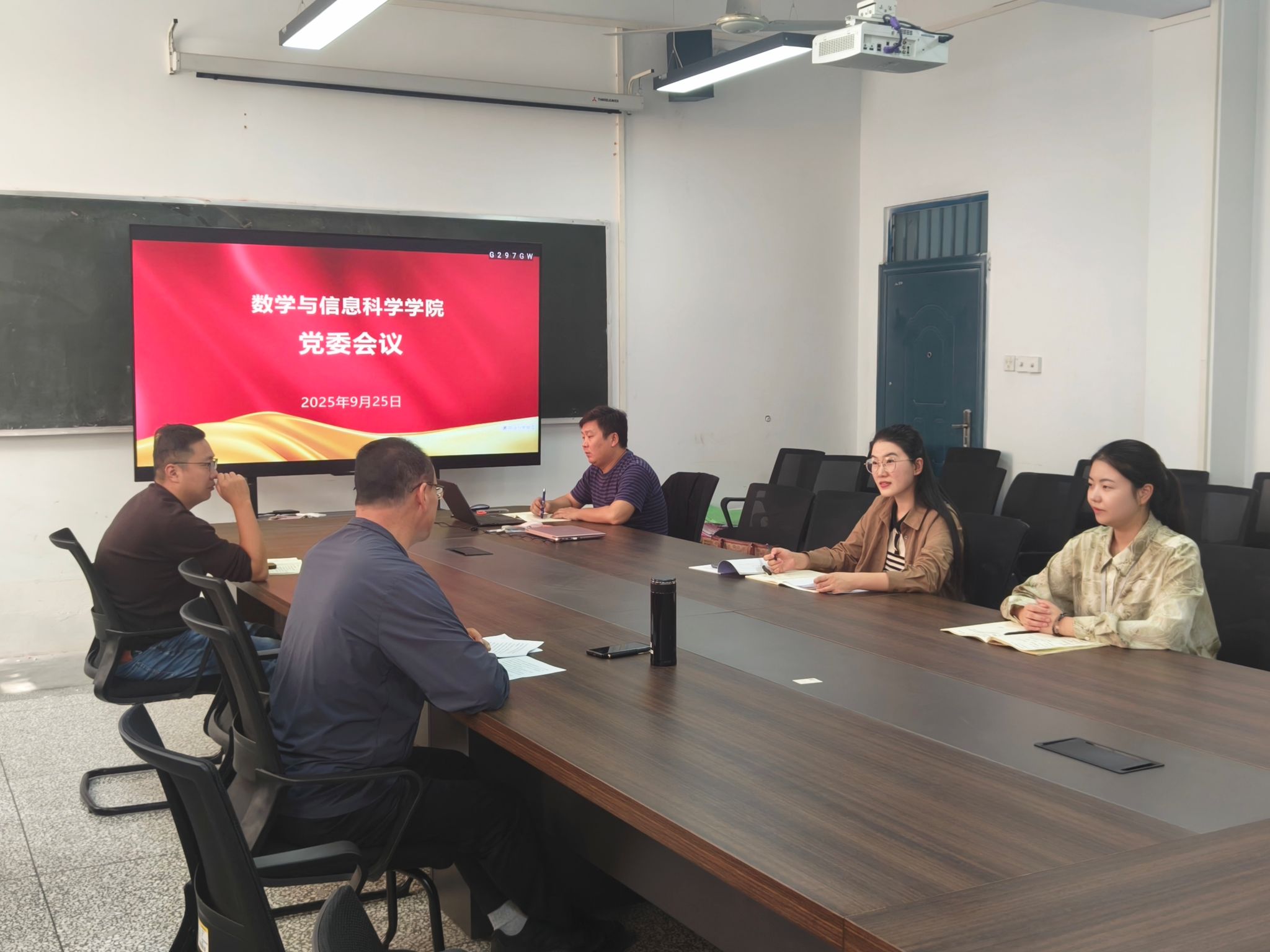 • 9月25日,数学与信息科学学院在综合楼218会议室召开党委会议,全体党委委员参加会议。会议由学院党委书记朱永恒主持。
