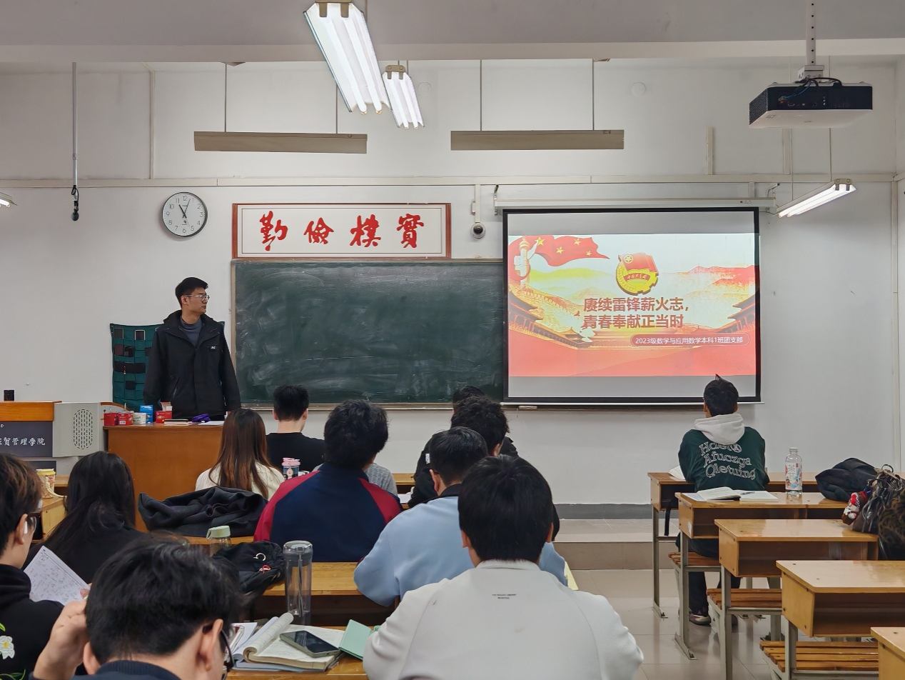 为深入学习贯彻习近平总书记关于弘扬雷锋精神的重要论述,引导广大团员青年深刻把握雷锋精神的时代内涵与实践要求,2026年3月25日,数学与信息科学学院2023级数学与应用数学本科1班于自勉堂317教室,开展以“赓续雷锋薪火志,青春奉献正当时”为主题的学雷锋教育活动。
