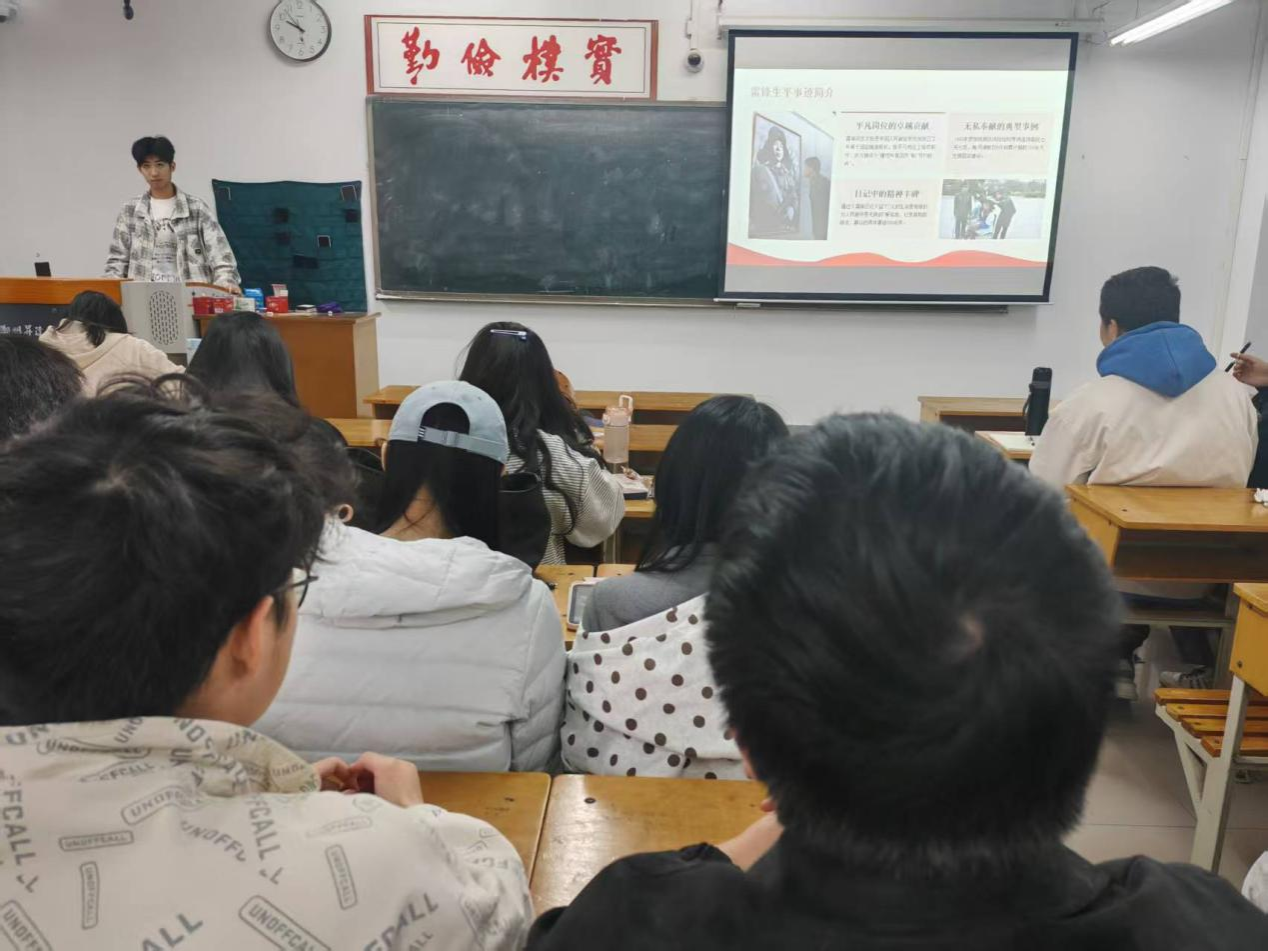 活动伊始,团支书吴东阳以“雷锋精神永放光芒”为开篇,讲述雷锋同志恪尽职守、无私奉献的生平事迹,生动展现雷锋精神的核心内涵。接着,围绕“青春奉献的时代意义”展开阐述,结合国家发展与青年使命,强调青年是民族复兴的战略支撑力量,奉献精神对个人价值塑造、能力淬炼和心理韧性具有积极作用,并引导团员思考新时代践行雷锋精神的实践路径。最后,吴东阳动员大家立足数学专业特色,在互助帮扶与志愿服务中践行青春担当。